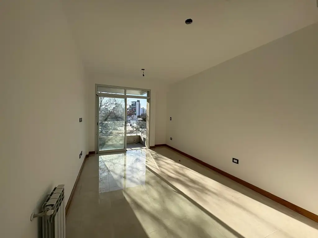 El dormitorio dispone de placard empotrado, radiador y balcón propio. Baño completo con bañera y ducha, artefactos de primera línea. Espacio con bacha para lavarropas y caldera dual para agua caliente.
