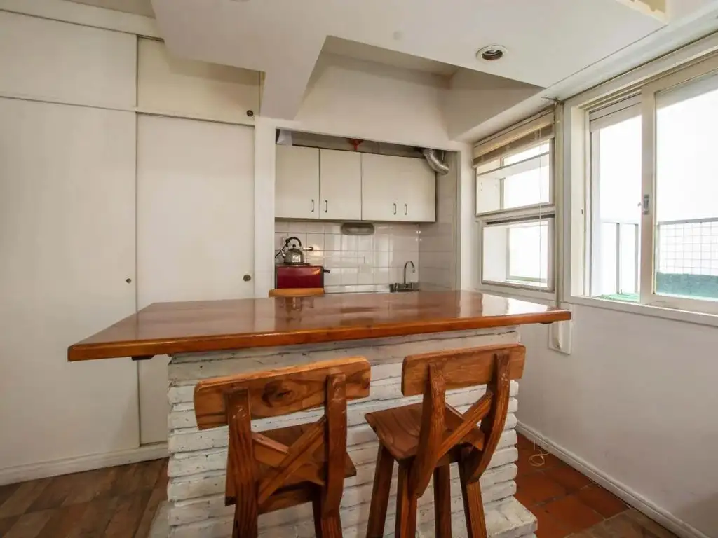Barra desayunadora, baño completo. Placard empotrado.