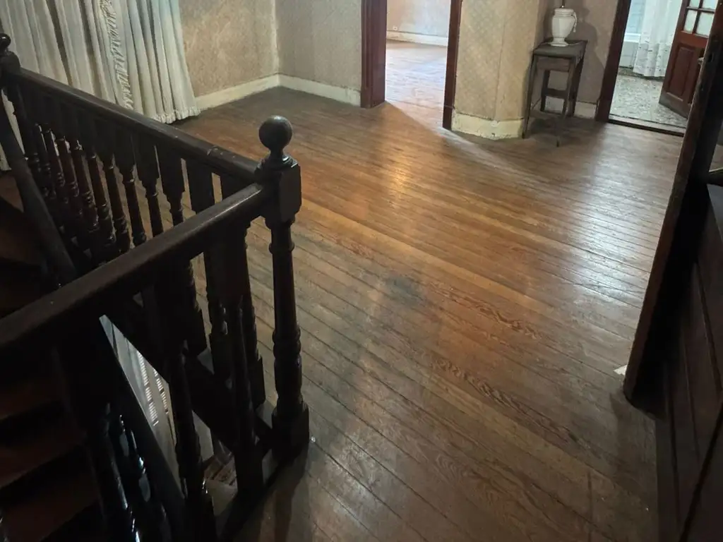 La planta alta cuenta con dos amplias habitaciones tambien con pisos de pinotea antiguos en buen estado. La habitacion del frente tiene un pequeño balcon. Y baño completo con bañera y ducha, y un pequeño living.
