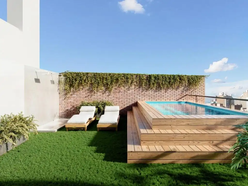Se desarrolla en planta baja y 8 pisos, con unidades monoambientes, 1 y 2 dormitorios, todas con balcones, excelente distribución y ventilación cruzada. En la planta baja se ubican cocheras y un local comercial. El último nivel cuenta con terraza exclusiva, un quincho cubierto con parrillero y solarium con minipiscina.