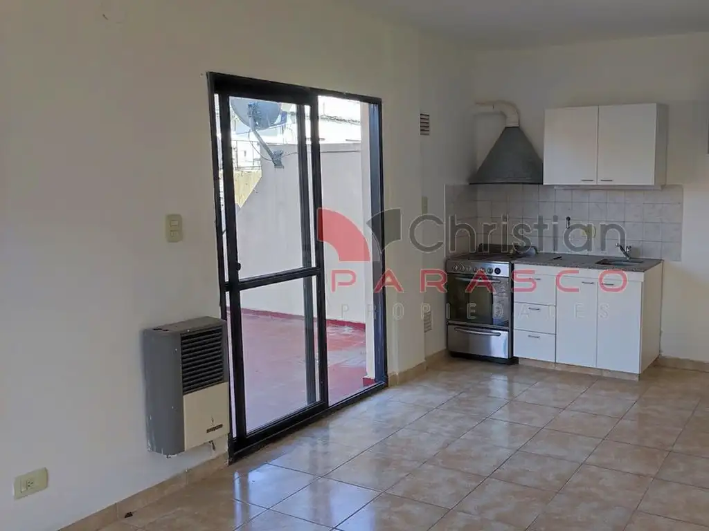 Ambiente único con cocina integrada, con extractor, muebles bajo mesada y alacena. Estufa tipo tiro balanceado. Puerta ventana a Balcón aterrazado.