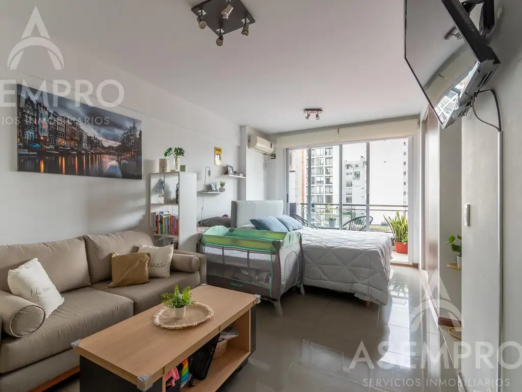 El ambiente cuenta con salida a balcón mediante amplios ventanales, generando una buena entrada de luz natural.