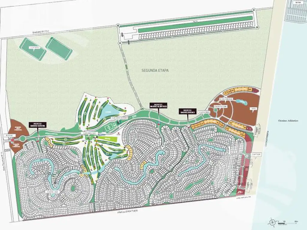El mega complejo incluye lagunas atravesadas por puentes colgantes, oficinas, un club de niños y un colegio bilingue; además de un bosque de pinos marítimos plantados hace ya 50 años.