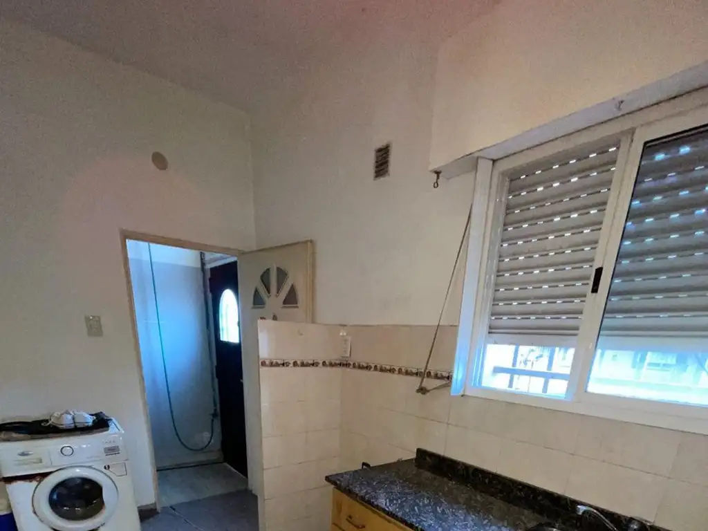 Distribución interior compuesta por living-comedor integrado con cocina, equipado con muebles de bajo mesada y ventana hacia la calle. Cuenta con lavadero separado y baño completo con ducha. Primer sector incluye una habitación con vista a la vía pública.