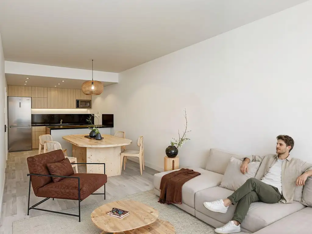Hacia el frente de la unidad se desarrolla el estar comedor, un ambiente luminoso de grandes dimensiones. Este espacio se vincula directamente con el balcón, que aporta ventilación y luz natural, ampliando visualmente el área social y generando un agradable espacio exterior.