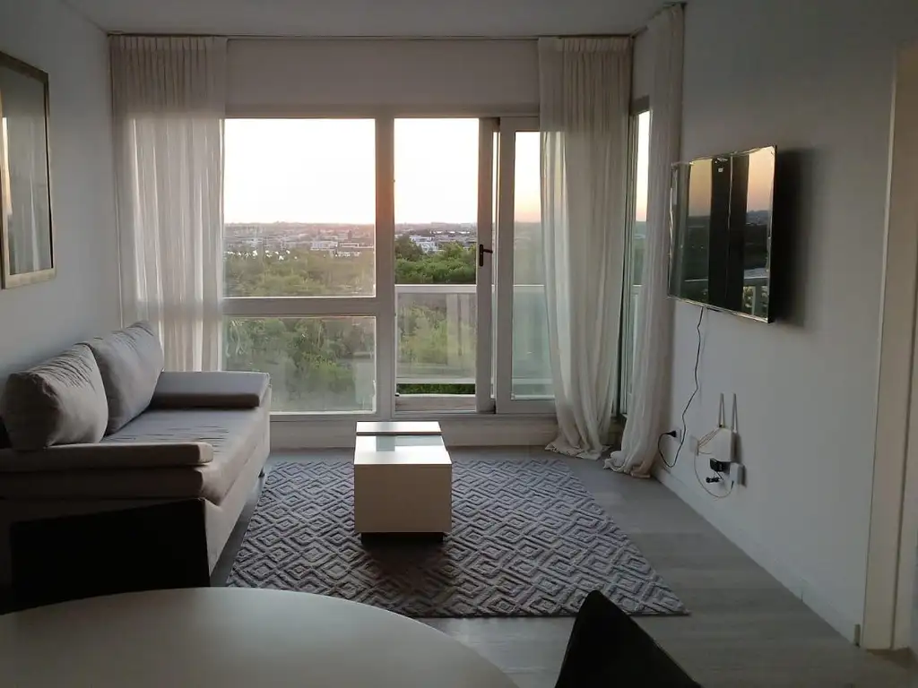 Cocina integrada con amplio living muy luminoso con vista al GOLF