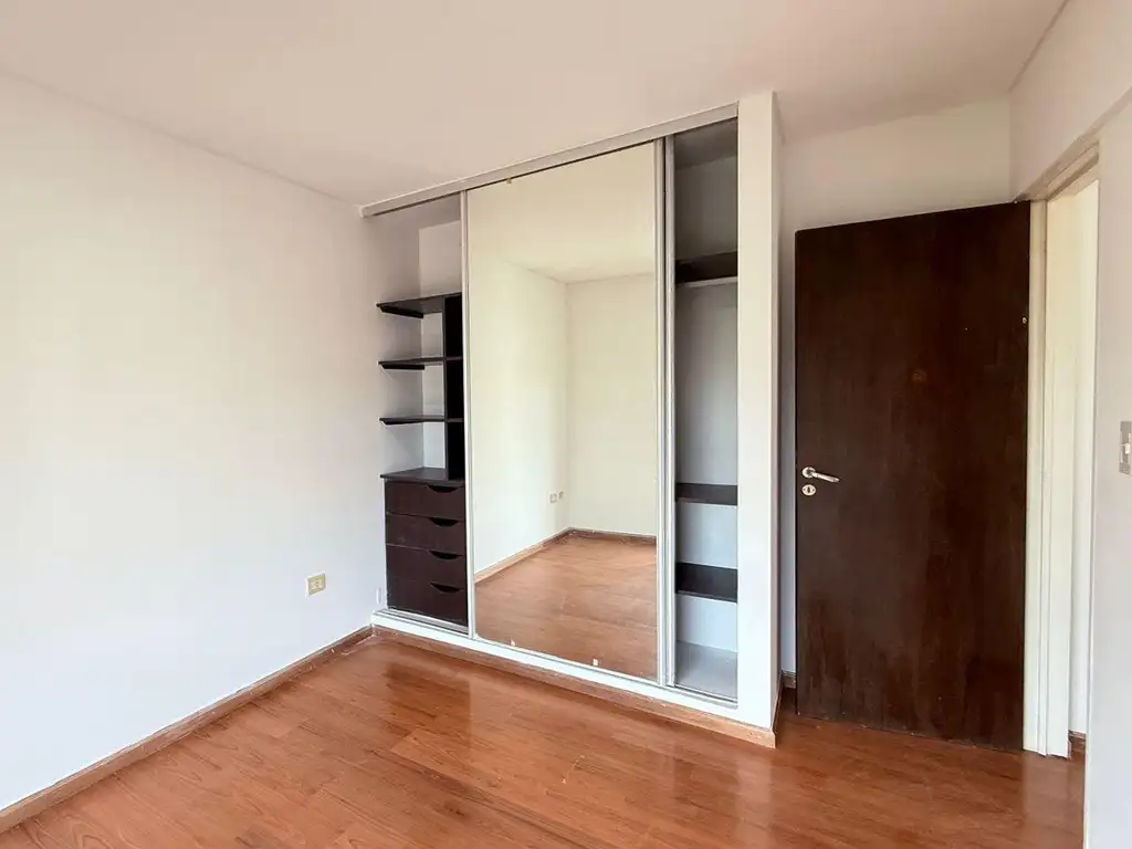 El dormitorio ofrece confort con pisos de parquet y un placard completo con puertas corredizas espejadas.