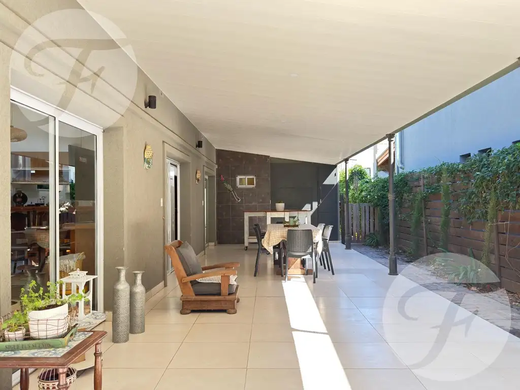 La galeria es uno de los sectores protagonistas de la casa por su amplitud y comodidad, con posibilidad de cerrarla facilmente para generar un gran ambiente adicional.