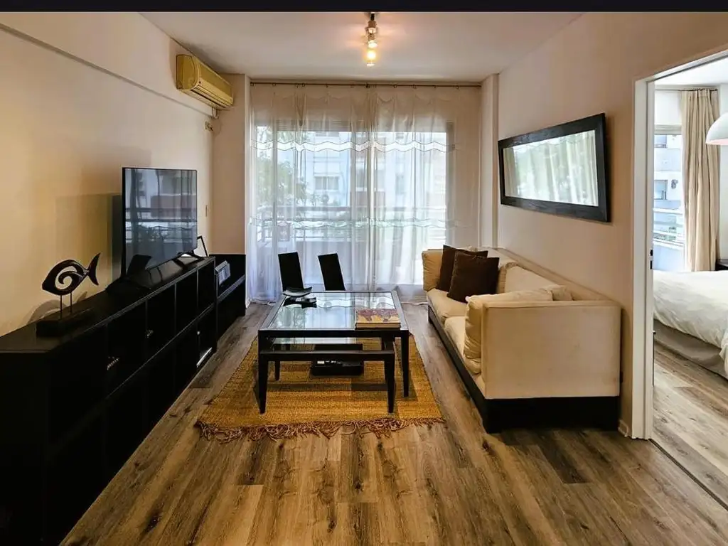 El departamento cuenta con un dormitorio en suite que incluye vestidor, además de un toilette adicional para visitas. La cocina está equipada con muebles modernos y lavadora, ideal para facilitar las tareas diarias. Desde el amplio balcón corrido, podrás disfrutar de vistas despejadas y un espacio perfecto para relajarte.