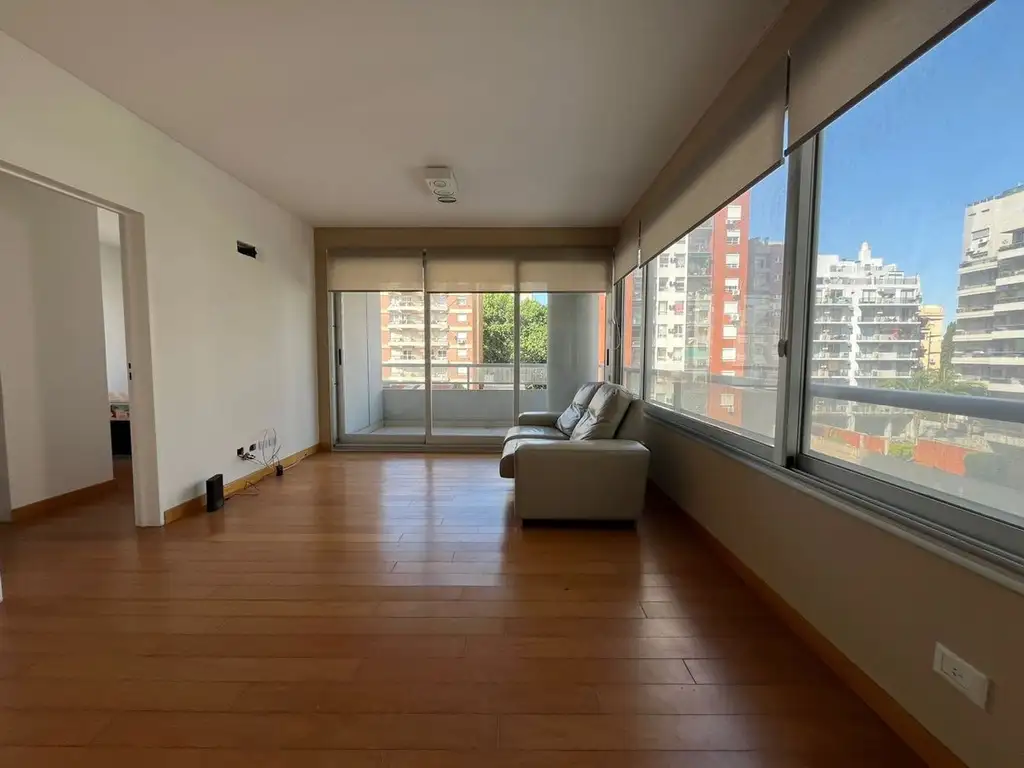Amplio living, todo vidriado, con amplio ventanal que sale a balcón a pulmón de manzana