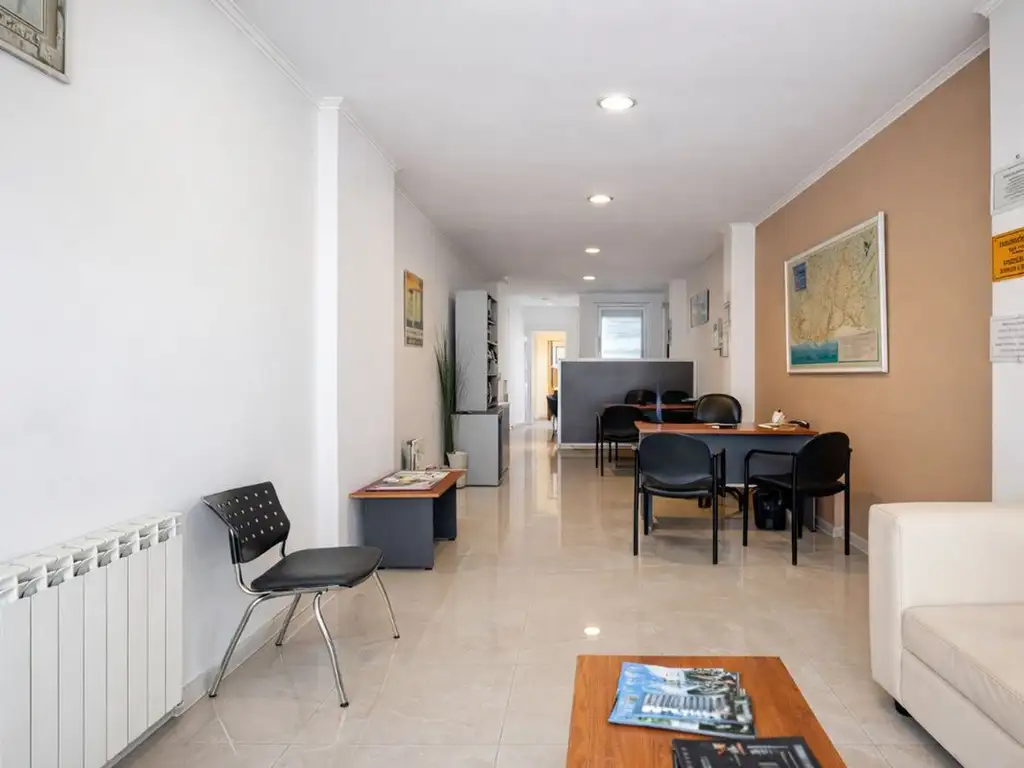 * Área principal de recepción amplia y luminosa. Al ingresar cuenta con sillón de recepción con mesa ratona, silla y dos escritorios con sus respectivas sillas, además de mueble de guardado.