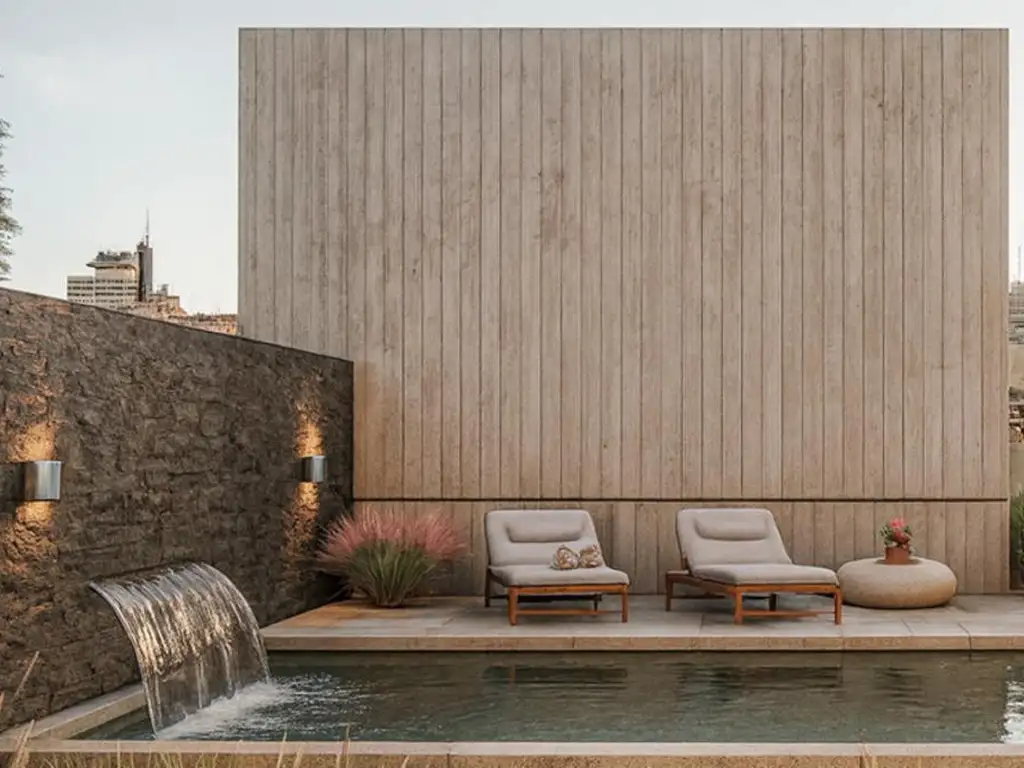 Los detalles de terminación son de alta calidad, con hormigón visto, pisos de porcelanato símil madera y DVH.
