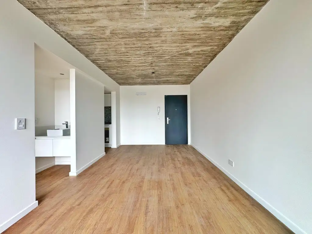 La unidad cuenta con un luminoso estar con cocina integrada, equipada con cocina, termotanque y mobiliario completo de alacena y bajo mesada, ofreciendo funcionalidad y buen espacio de guardado. Además, dispone de un espacio de guardado extra.