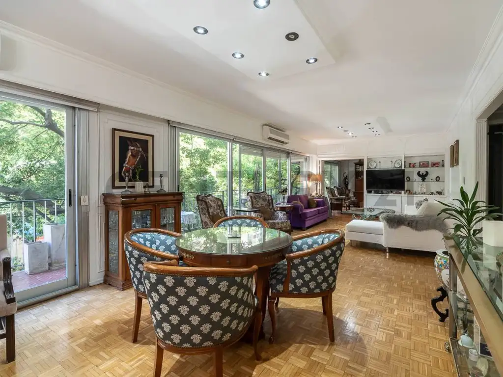 La propiedad se destaca por su imponente recepción con living y comedor de generosas dimensiones, con salida a balcón corrido y vistas abiertas al arbolado, que aportan gran luminosidad y una atmósfera única.
