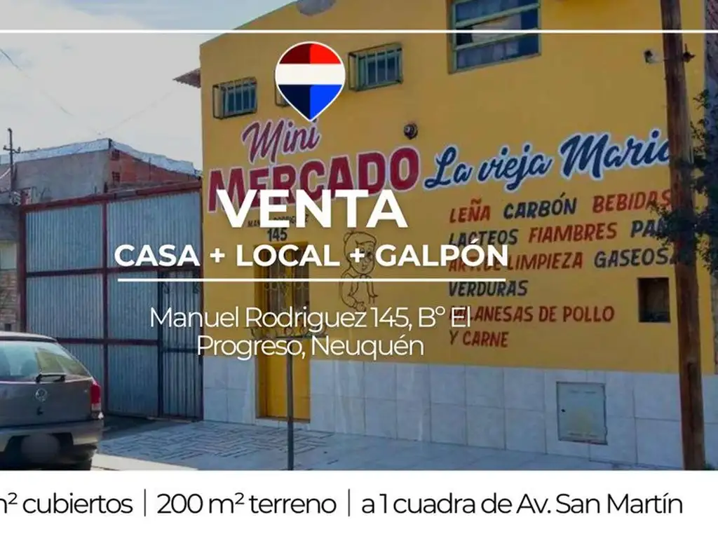 VENTA CASA 2 DORM + SALON COMERCIAL + GALPÓN NQN