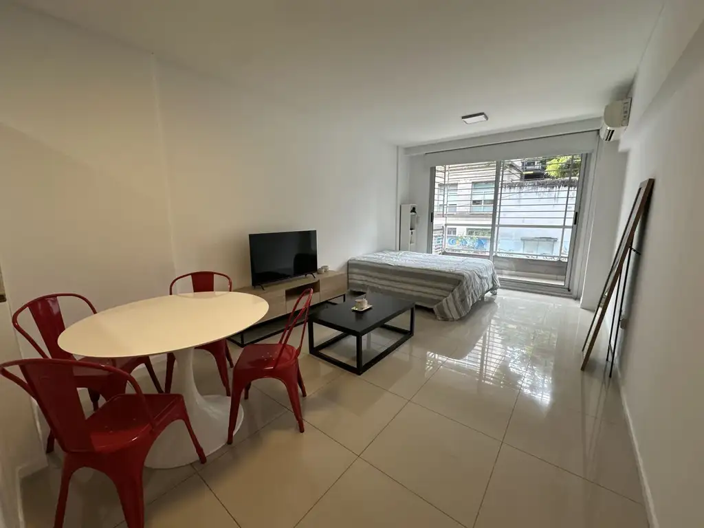 Ambiente amoblado y equipado con, sommier de dos plazas, mesa redonda con cuatro sillas, rack con TV, AIRE ACONDICIONADO (FRIO/CALOR), SILLÓN DOS CUERPOS Y DIVISOR (han sido sumados recientemente y no figuran en las fotografías de la publicación)