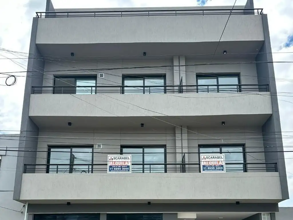 En alquiler departamento ubicado en Pellegrini 418, casi esquina Alem, en Merlo Sur, dentro de un edificio moderno y bien mantenido.