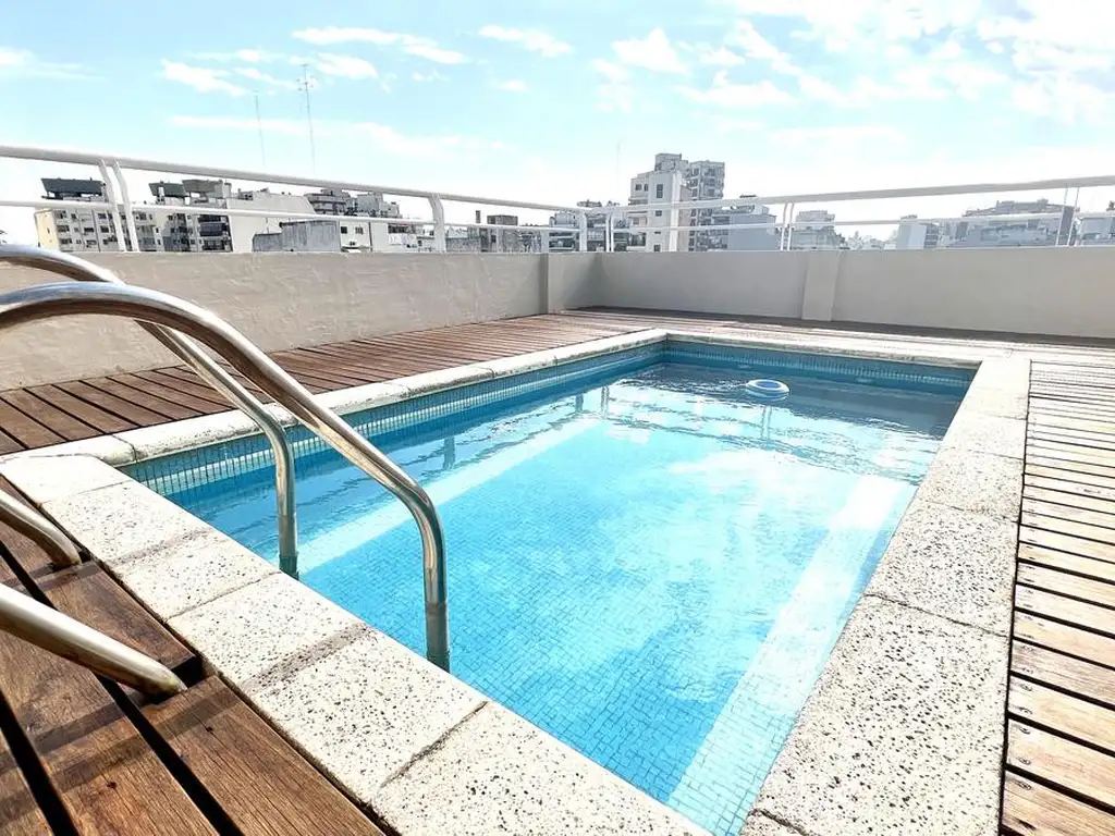 Amenities: terraza de uso común con pequeño Sum, baño, piscina y parrilla.