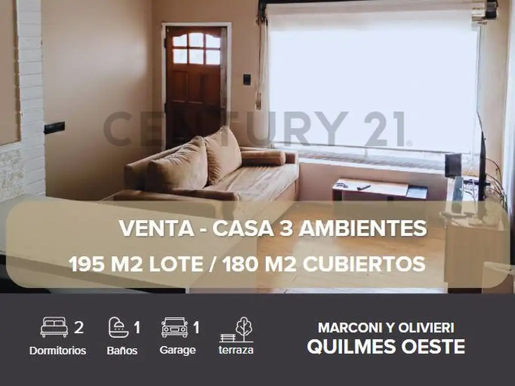 VENTA CASA 3 AMBIENTES + COCHERA QUILMES OESTE