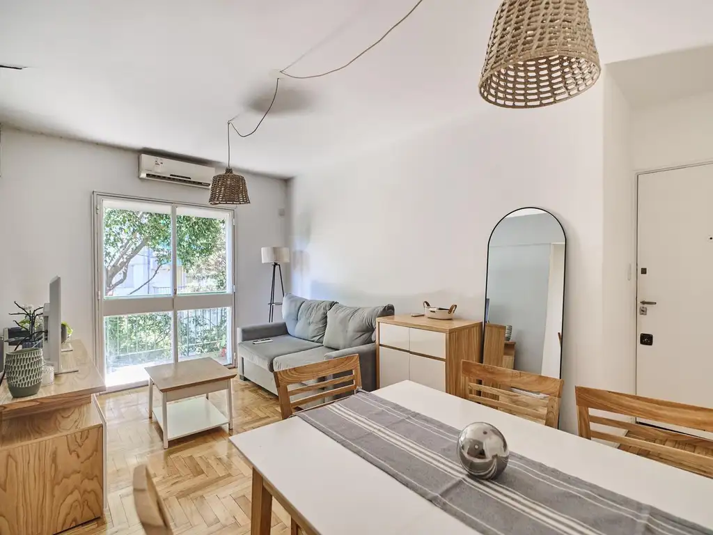 Al ingresar a la propiedad nos encontramos con un luminoso living-comedor con salida al balcón, lo que aporta gran entrada de luz natural y una agradable vista abierta hacia una plazoleta, generando un entorno verde y tranquilo.