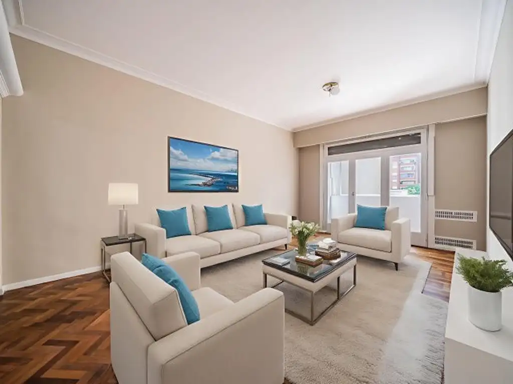 La propiedad cuenta con hall de entrada, amplio living- comedor con salida al balcón. Dos grandes habitaciones con placares empotrados. Baño principal. Pasillo de distribución. Cocina independiente con calefón y con alacenas. Lavadero independiente. Dependencia de servicios y toilette. Tiene doble circulación. Carpintería de cedro, pisos de incienso. Puerta de entrada de cedro macizo y entrada de servicios. Baulera individual. El edificio cuenta con 2 ascensores, una principal y otro de servicio.
