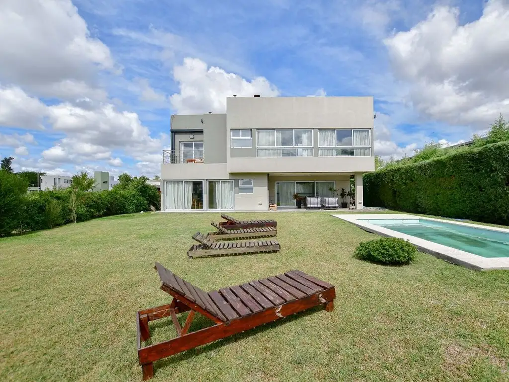 El parque acompaña la propiedad con un amplio espacio verde y pileta, perfecto para disfrutar durante todo el año y aprovechar al máximo el tamaño del lote.