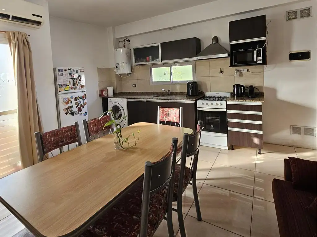 -El living comedor es amplio y cómodo, con cocina integrada y muebles completos, generando un espacio moderno y funcional. Desde allí se