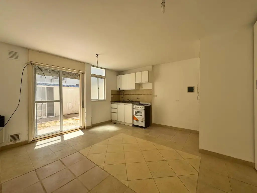 Descripción: Monoambiente en planta baja. Cocina con alacenas y baja mesada, baño completo con bañera y patio.