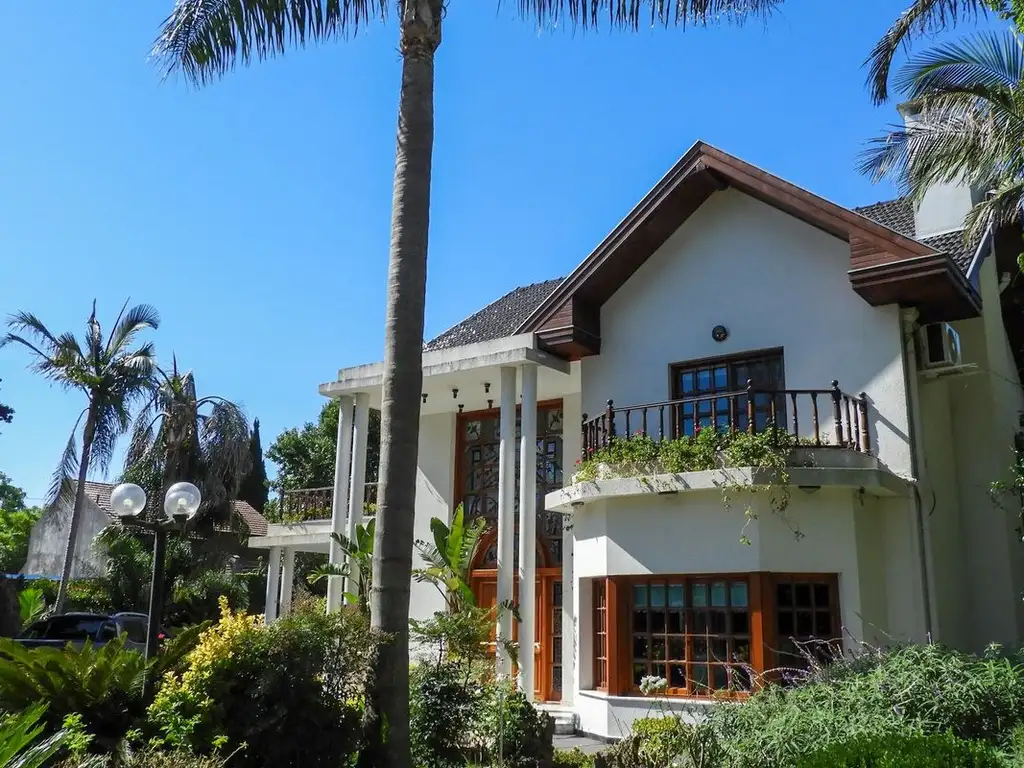 Desarrollada en dos plantas, con 418 m2 cubiertos y 55 m2 semicubiertos, en espectacular lote propio de 2355 m2.