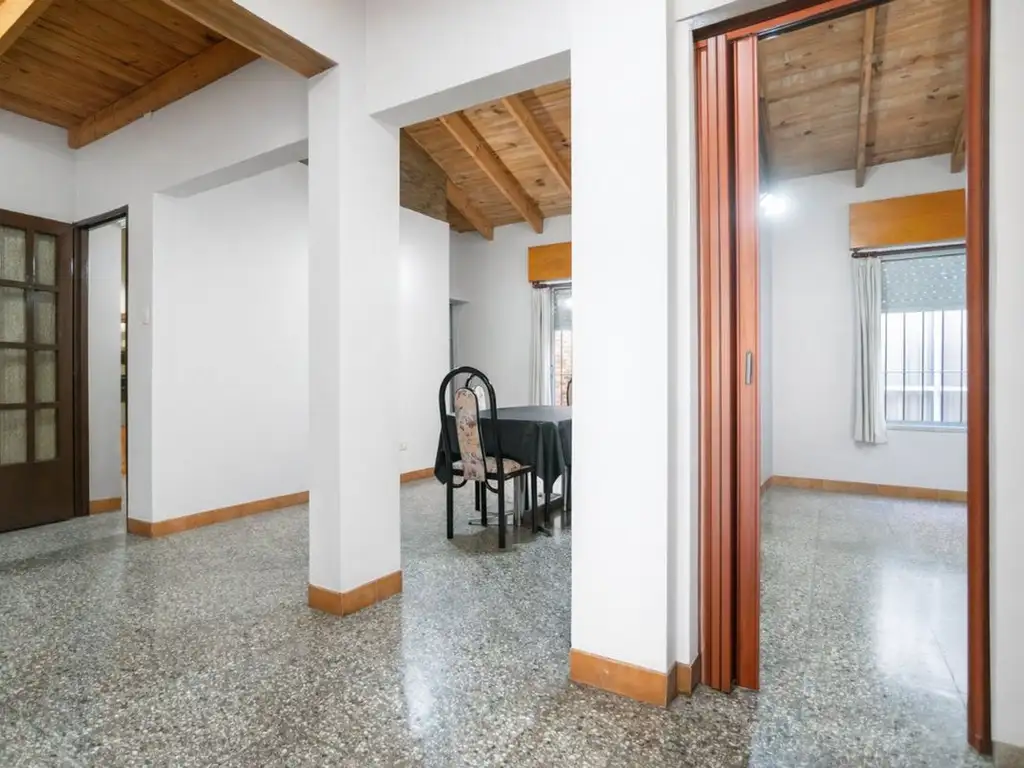 La casa cuenta con un amplio living comedor, cocina independiente, cinco ambientes bien distribuidos, baño completo y toilette. Además, posee garage cubierto, patio y un quincho equipado con parrilla, ideal para reuniones familiares o con amigos.