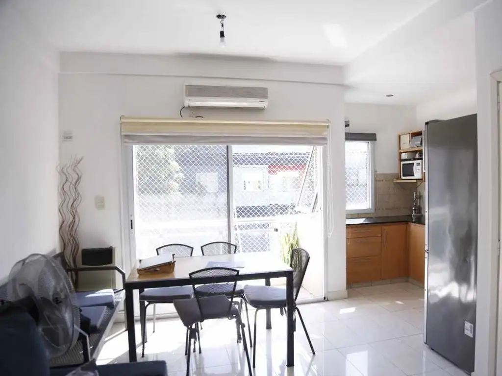 También cuenta con un dormitorio amplio con placard y un balcón privado, que también aporta ventilación y luminosidad. Baño completo y lavadero independiente.