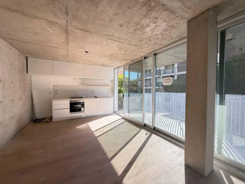 Descripción: Ingresamos por un amplio living comedor con cocina integrada que cuenta con salida a un balcón corrido al frente de amplias dimensiones. En el intimo un dormitorio con placar y salida al balcón + un baño completo.