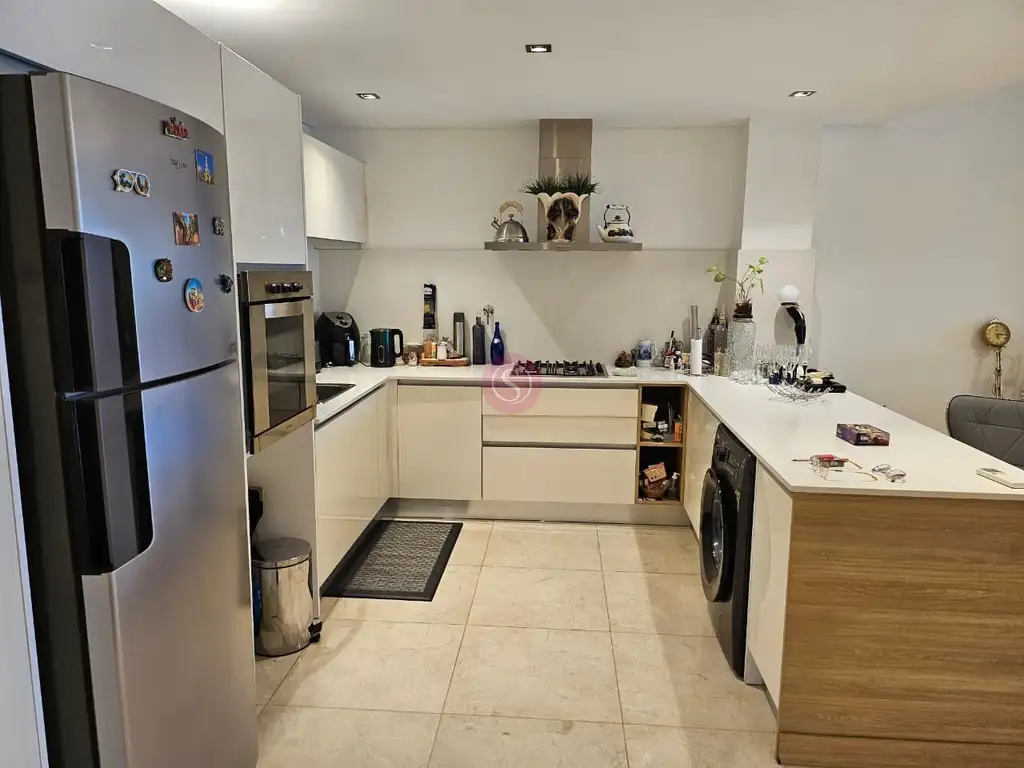 Cuenta cocina amplia con barra, lugar para lavarropas, lavavajillas y heladera doble con entrada de agua. amplio living comedor, balcón con vistas al parque central de Ayres Vila y parrilla Magma, toilette, y con un amplio dormitorio en suite, con vestidor completo. Y tiene dos cocheras cubiertas.