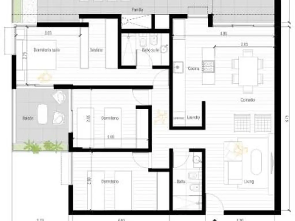 - 3 dormitorios
