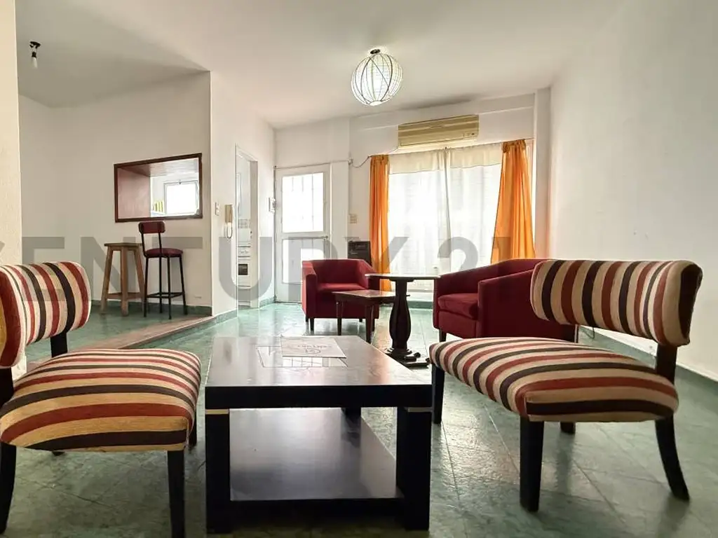 Se accede desde la calle a travez de un pasillo hacia un área común, en la planta baja cuenta con una cocina separada, equipada con barra desayunadora, un living-comedor, y un baño de servicio.