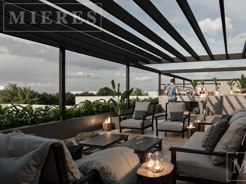 DESCRIPCION Y DETALLES TECNICOS: Departamentos con Hall de acceso. Cocina semi-integrada con hornos y anafes en acro inoxidable empotrados en muebles bajo mesadas los muebles de cocina son de terminaciones en aluminio. Mesada de cocina en Silestone. Grifería de alta gama FV con cierre cerámico. Living - comedor con salida a un cómodo balcón con parrilla. Toilette de recepción. Dormitorio principal en suite con vestidor y su interior/exterior de alta gama en aluminio pintado de color oscuro. Aires acondicionados F/C instalados en cada ambiente. En los baños Vanitorys colgantes , espejos en baño y toilettes iluminados por leds en sus perímetros, mampara de vidrio templado. Pisos porcelanato símil madera. AMENITIES: Pileta con jacuzzi en terraza amplia con solárium en deck totalmente equipado con amoblamiento de primera calidad de la marca MIKE OUTDOORS Amplio S.U.M. cubierto totalmente equipado con aire acondicionado frio calor, baño completo, cocina completa con amoblamiento bajo mesada y alacenas, horno y anafe empotrados de acero inoxidable. Provisión de amoblamiento de primera calidad, sillones, mesas ratonas, mesas de comedor, iluminación, TV Smart 65" Amplio ROOFTOP, con parrilla y pérgola para organizar eventos al aire libre. El edificio cuenta con una gran terraza con parrillas, pileta y solárium. Gimnasio. Circuito cerrado de cámaras de seguridad en accesos y halls comunes.