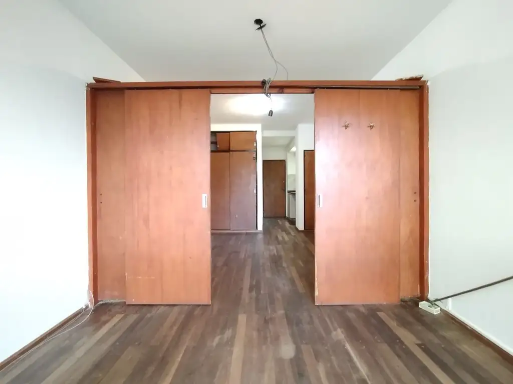 La unidad se desarrolla en un ambiente único, luminoso, con pisos parque, placard con interiores, al frente con vista a calle 3 de Febrero.