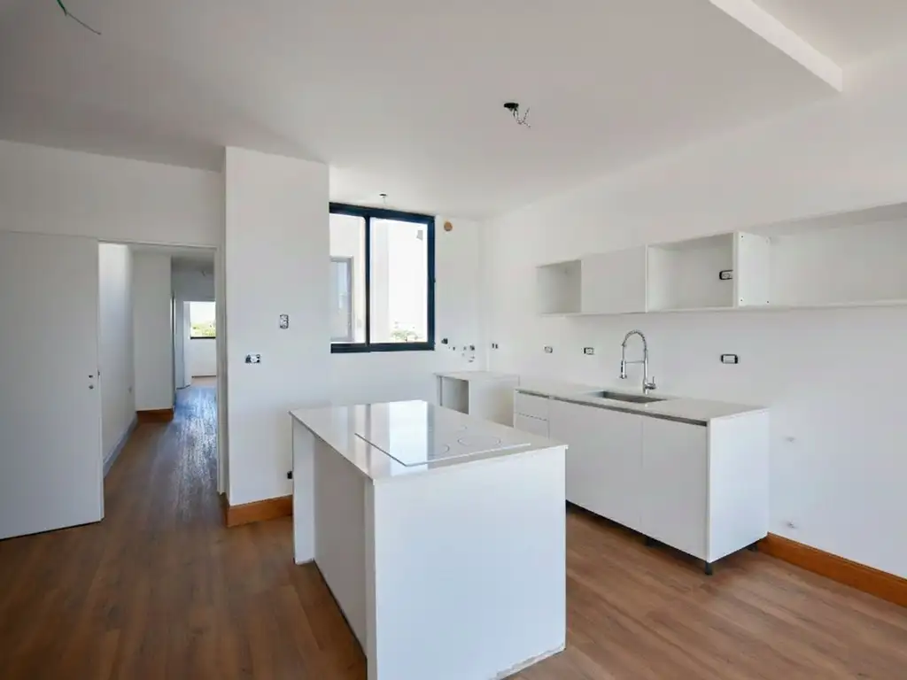 El área social compone de un amplio living comedor al frente con puertas ventanas con doble vidrio, que dan acceso al balcón, cocina integrada con muebles bajo y sobre mesada, isla con anafe y horno eléctrico, espacio de lavadero, caldera eléctrica dual, y un toilette. Griferías marca FV, monocomando en cocina y lavadero.-