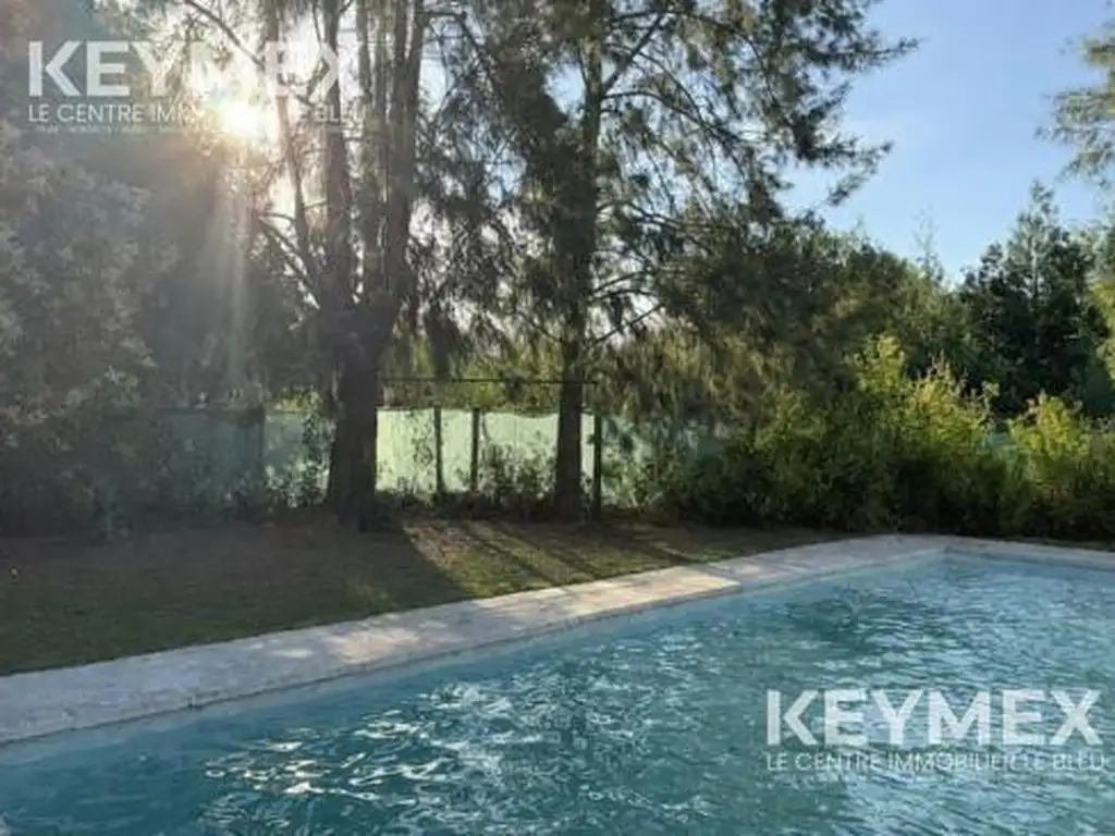 Exterior: Galería con parrilla, pileta y extenso parque arbolado.