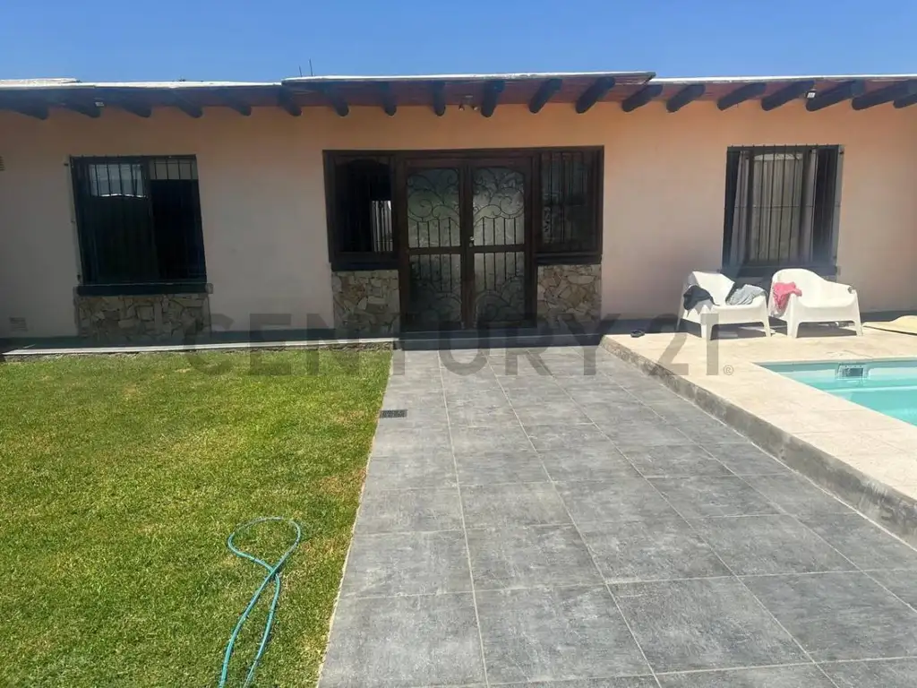 cocina, living-comedor, 2 habitaciones, patio interno, 1 baño completo, quincho techado con parrilla, placards, cochera , piscina parquizada