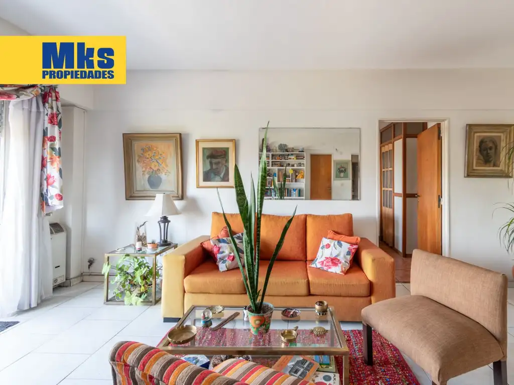 El living comedor tiene salida a un balcón tradicional de generosas dimensiones. La cocina es amplia y completa, con espacio para comedor diario, y cuenta con lavadero independiente. La propiedad dispone de calefacción por estufa de tiro balanceado y equipos de aire acondicionado. En general, se encuentra en muy buen estado de conservación.