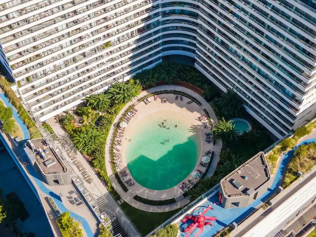 Ingresamos por un living comedor amplio, luminoso y conectado con el exterior a través de un balcón aterrazado que invita a disfrutar de la maravillosa vista que se abre hacia el complejo, con un impactante paisajismo y una increible piscina tipo playa que transforma el entorno en un verdadero oasis urbano!