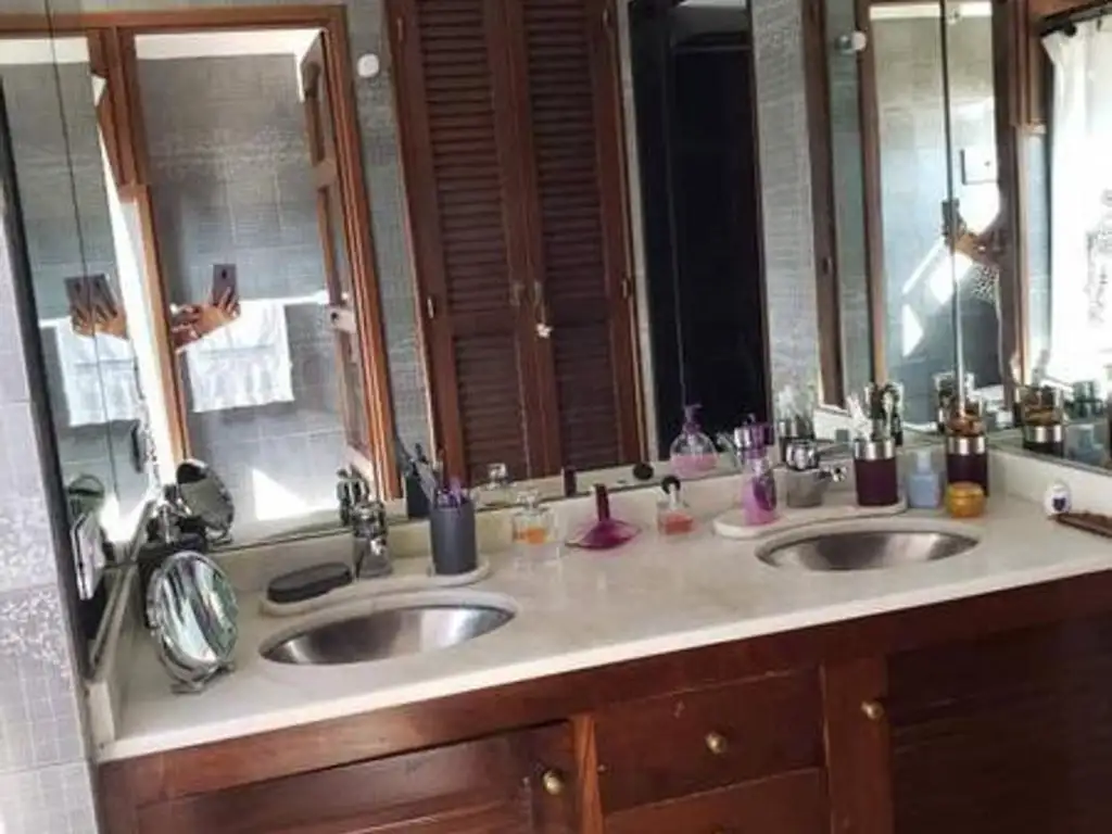 Amplio living comedor con desnivel, hogar. Toilette de recepción, cocina con desayunador, comedor diario y lavadero integrado. Doble circulación. Dependencia de servicio o vestuario pileta.