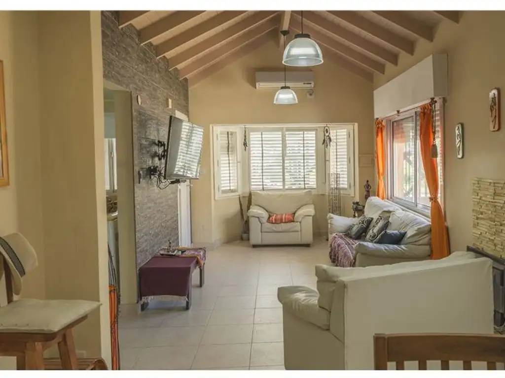 En planta baja cuenta con living y estar-comedor, cocina semi-integrada con barra desayunadora revestida en piedra, horno industrial, campana, muebles en madera bajo y sobre mesada. Vinculado al comedor y al jardín, se accede por puerta-ventana al quincho totalmente equipado y cubierto, con acceso por portón corredizo automático a la entrada de auto.