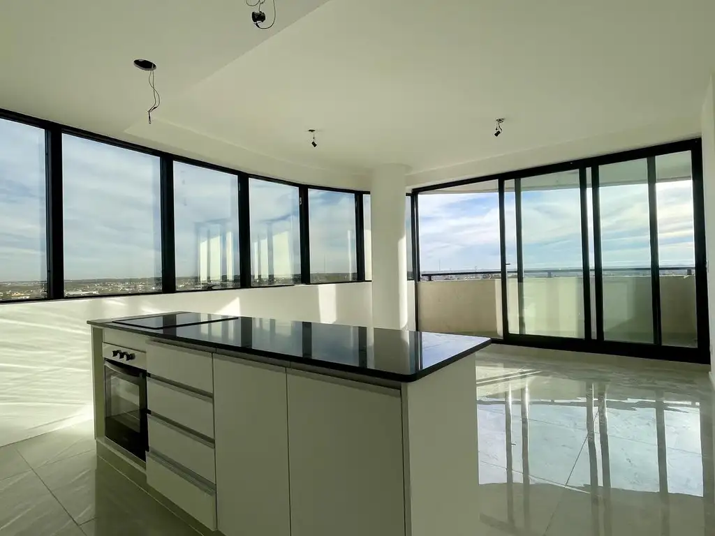 El departamento consta de estar comedor con ventanal a balcón con increíble vista, cocina integrada, separada por una mesada con anafe y campana de acero inoxidable, tiene también horno eléctrico, muebles de cocina con bajo mesada y alacena. El dormitorio cuenta con balcon y placard completo. El baño es completo con grifería de primera calidad. Pisos de porcelanato en toda la unidad. Agua caliente central.