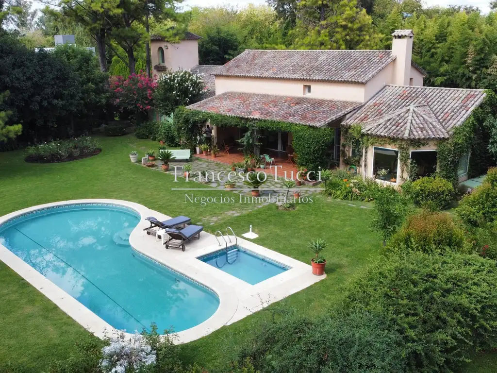 Casa construida en 1999 por el arquitecto A. De la Fuente. Cuenta con Parque de 3000 m2 con arboleada de 27 años con jacaranda, lapacho, palo borracho, seibo magnolia, robles americanos y frances, araucaria, tilo, cipreses pinos eliotti . y 89 pies de rosas. muchas flores.