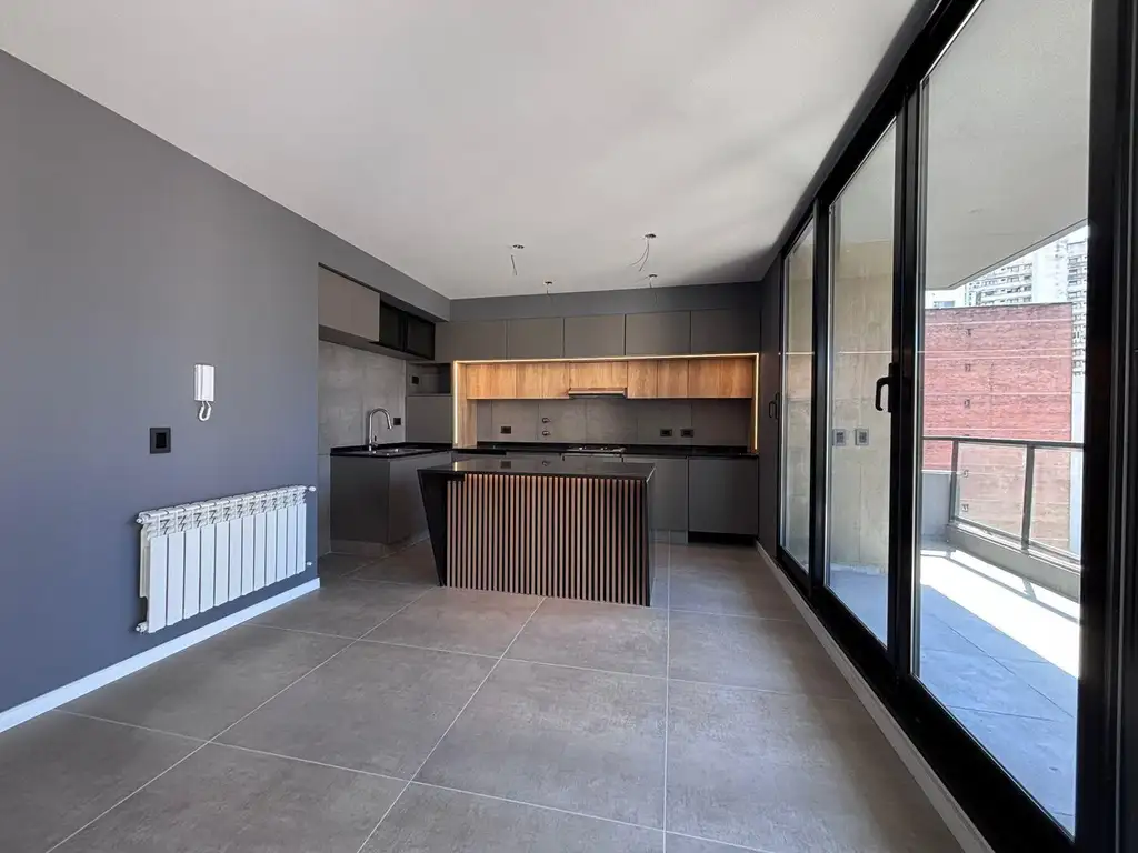 Pisos porcelanato con zócalos, yeso en paredes, aberturas aluminio Módena con DVH, griferías monocomando primeras marcas, amoblamiento de cocina a medida, piso porcelanatos en dormitorio, placard a medida y con interior, mesada cocina granito con bacha acero inoxidable, baño con cerámicos completo, mampara en ducha, artefactos primera marca, pre instalación AA y cable TV.