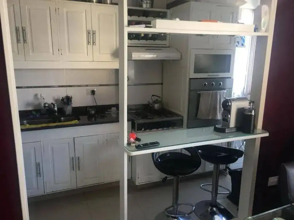 Este departamento cuenta con una superficie total y cubierta de 54 m², distribuidos en dos dormitorios y dos baños. El diseño interior incluye una cocina equipada, con barra desayunadora y mobiliario funcional, además de un living con acceso a una escalera interna. Los ambientes están bien definidos, con espacios para almacenamiento y circulación. El departamento dispone de baulera, lo que facilita el resguardo de objetos personales. Se permite la tenencia de mascotas.