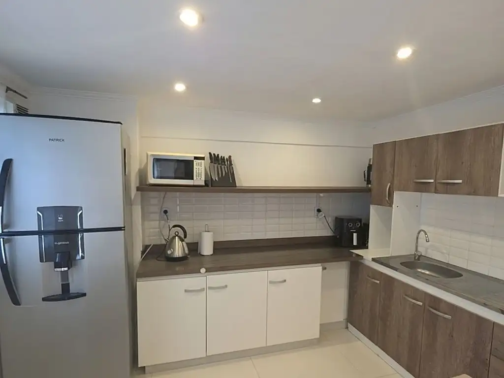 Excelente departamento remodelado compuesto por living comedor con cocina integrada, muebles bajo mesada y alacenas con pisos de porcelanato.