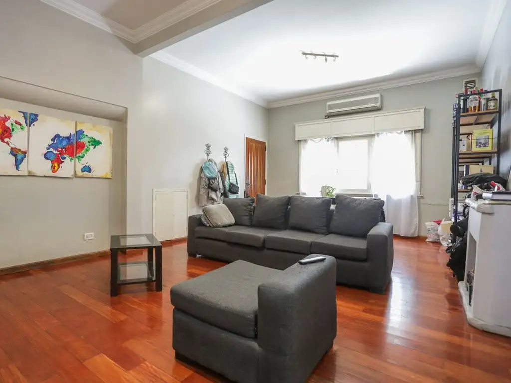 Amplio living comedor, pisos tarugados y aire acondicionado tipo split.